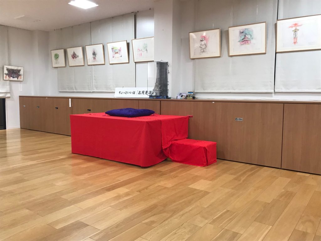 暖房の効いた綺麗な集会室に並べられたパイプ椅子のまえに落語家さんが座る高座が設けられており始まる前から雰囲気はバッチリでした。