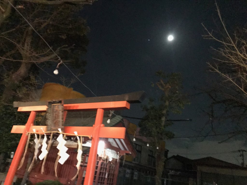 神社に着いたころは曇り空で月の姿は見えなかったのですが、参拝が終わった後に外に出るときれいな満月が静かに輝いていたのには少し感動しました。