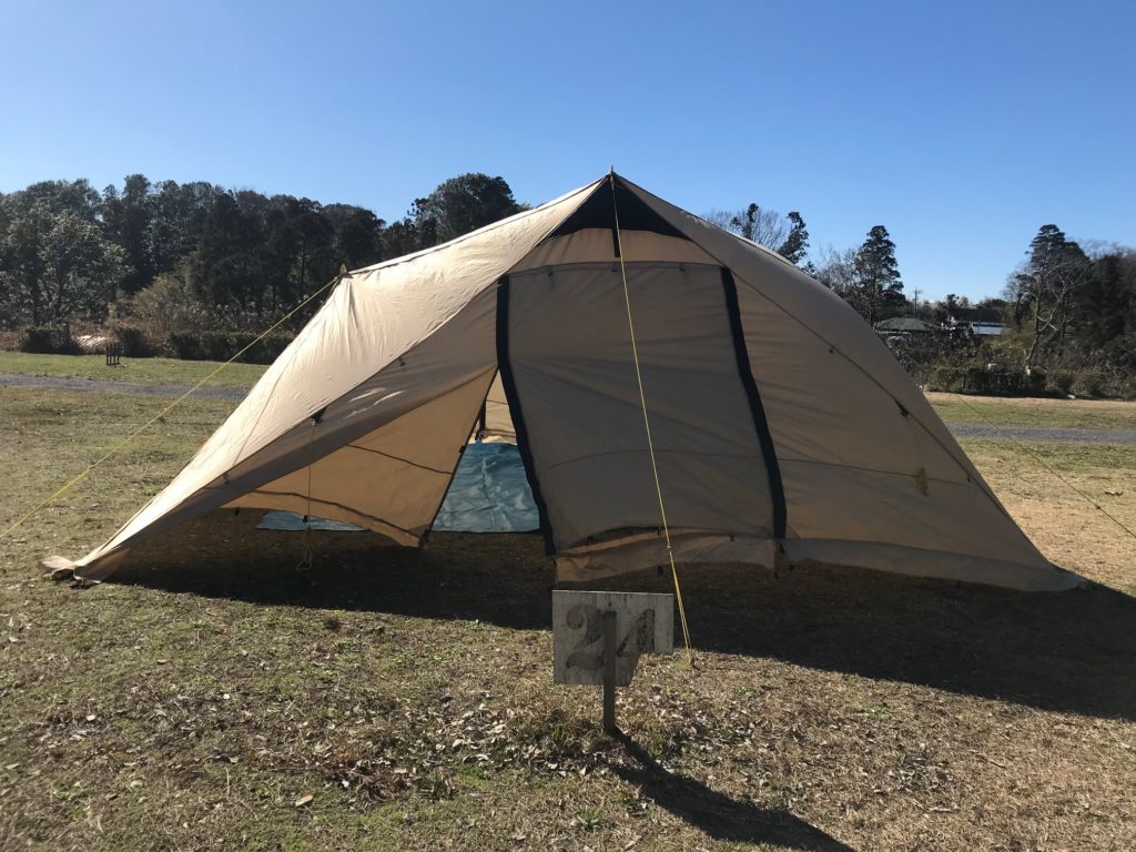 キャンプ場についてからテントの設営に入ったのですがジュンさんが出してきたテントは以前よりも大きくなっており「またアップグレートしたんですね」と苦笑。「ゆるキャン」が世間の耳目を集める一方で千葉は酒々井の冬空のもと私どもは「がちキャン」を開始しました。