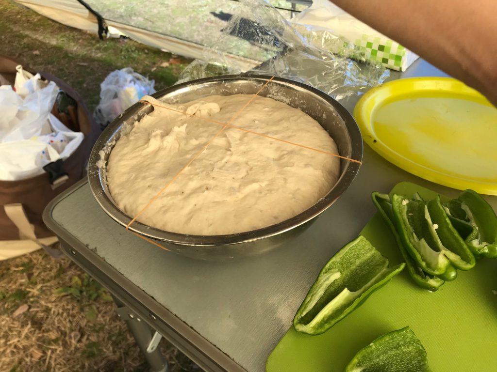 あらかじめジュンさんの奥様がご用意して下さったピザ生地をこねてマルゲリータを作ります。
