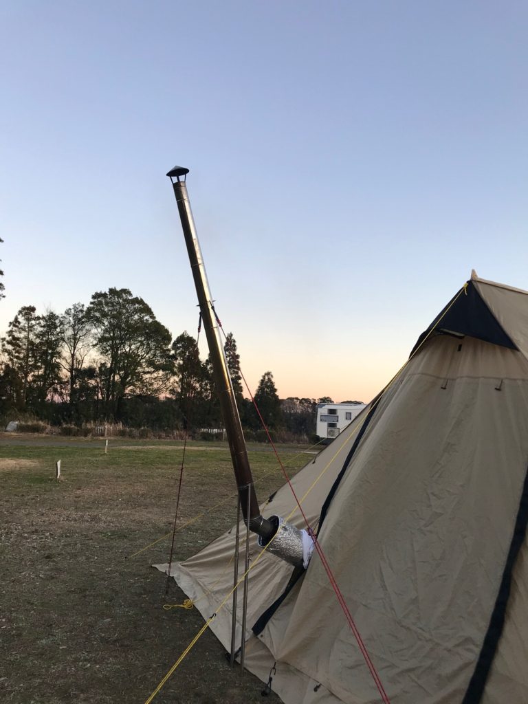 テントから煙突が出るだけで雰囲気が一気に本格的に!